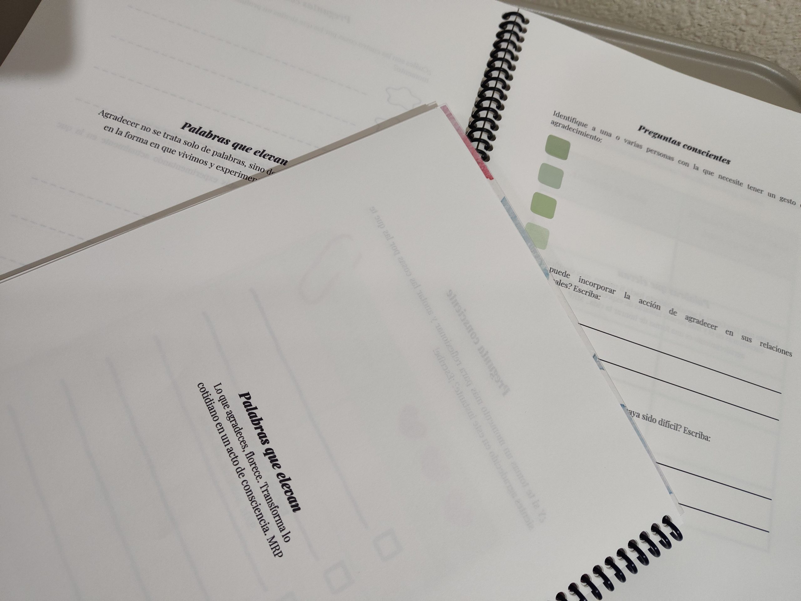 ✔ Páginas de “Palabras que Elevan”: Antes de cada pregunta encontrarás una frase profunda y transformadora —escrita por ti— que prepara tu energía para la reflexión del día.